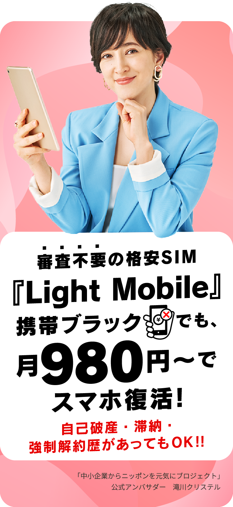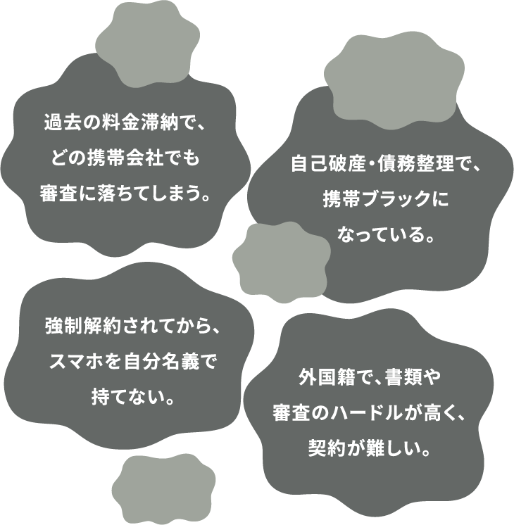 大手キャリアや一般格安SIMで断られた方のた目のサービスです。