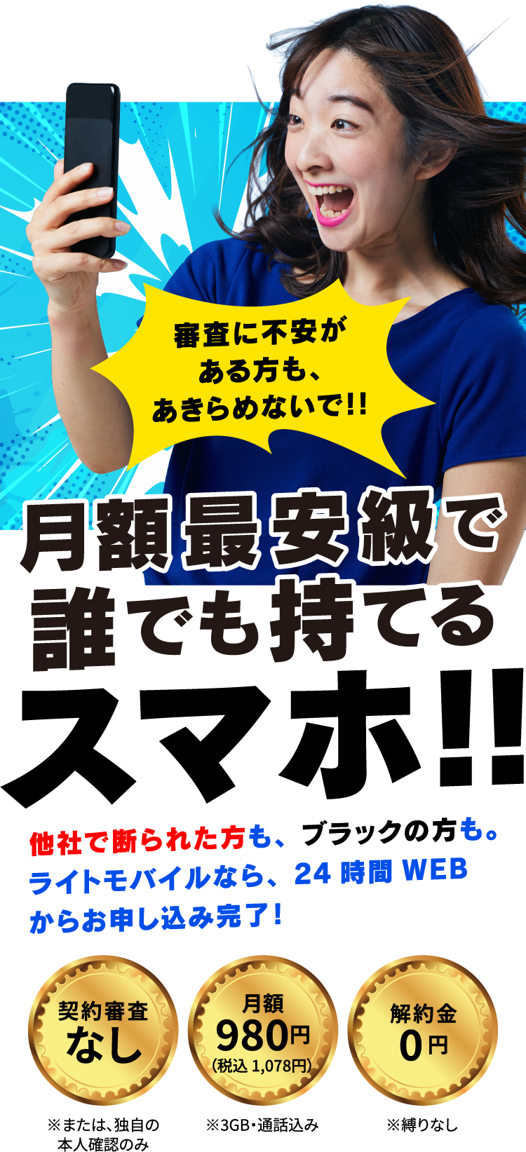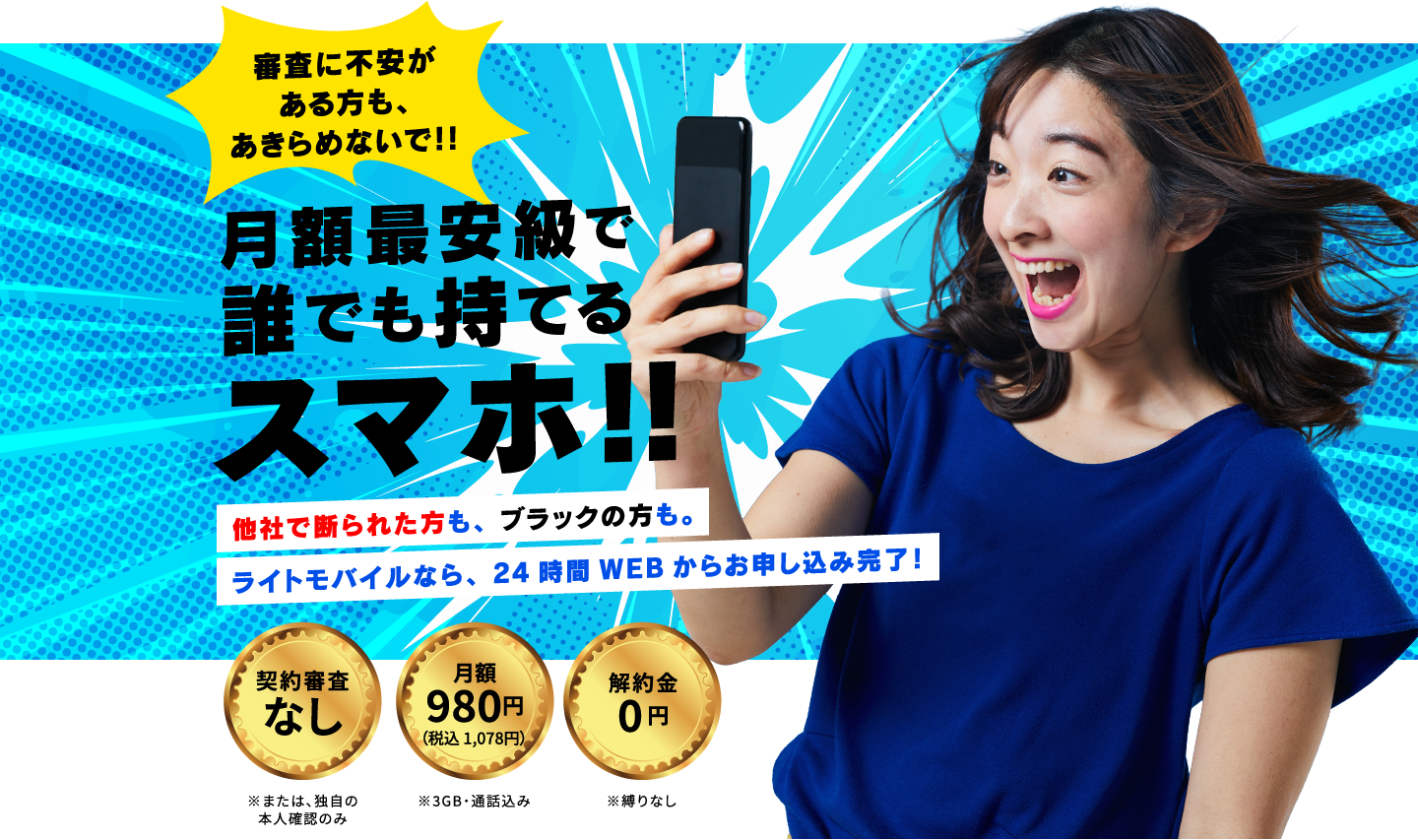 審査不要で、携帯ブラックでも契約OK